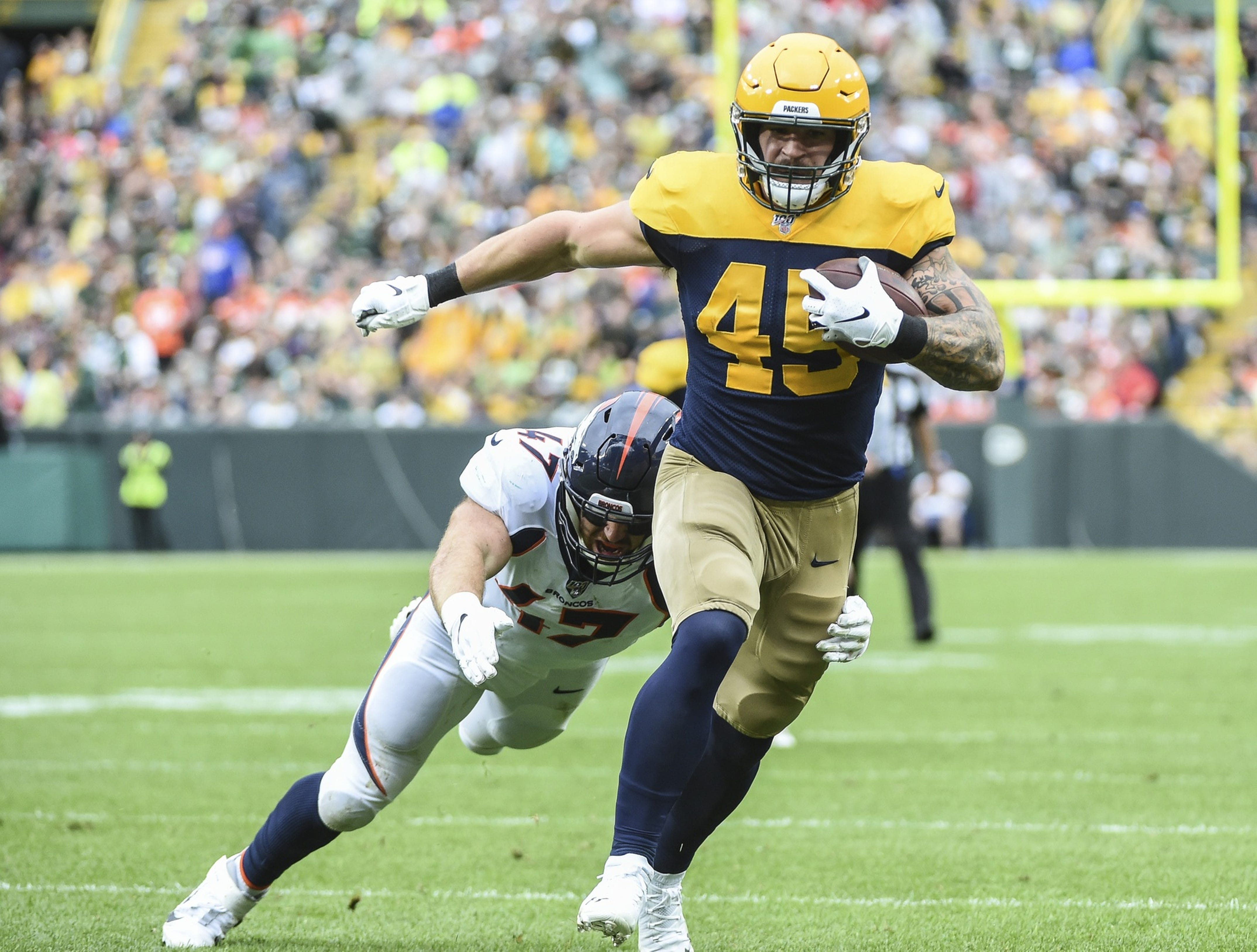 Packers’ DeAngelo Yancey is ready to fight for position on Geronimo Allison living up to his name Inbox: That kind of success doesn’t happen by accident Revisiting the Packers’ 2013 Draft Class: Only one player remains Inbox: The tenor of certain games can change Revisiting the Packers’ 2013 Draft Class: Only one player remains Patriots: Dan Vitale added to fullback depth chart 90 Buffalo Bills players in 90 days: Guard Jacob Capra Buffalo LaDarius Gunter, undrafted out of Miami, making strong 1st impression